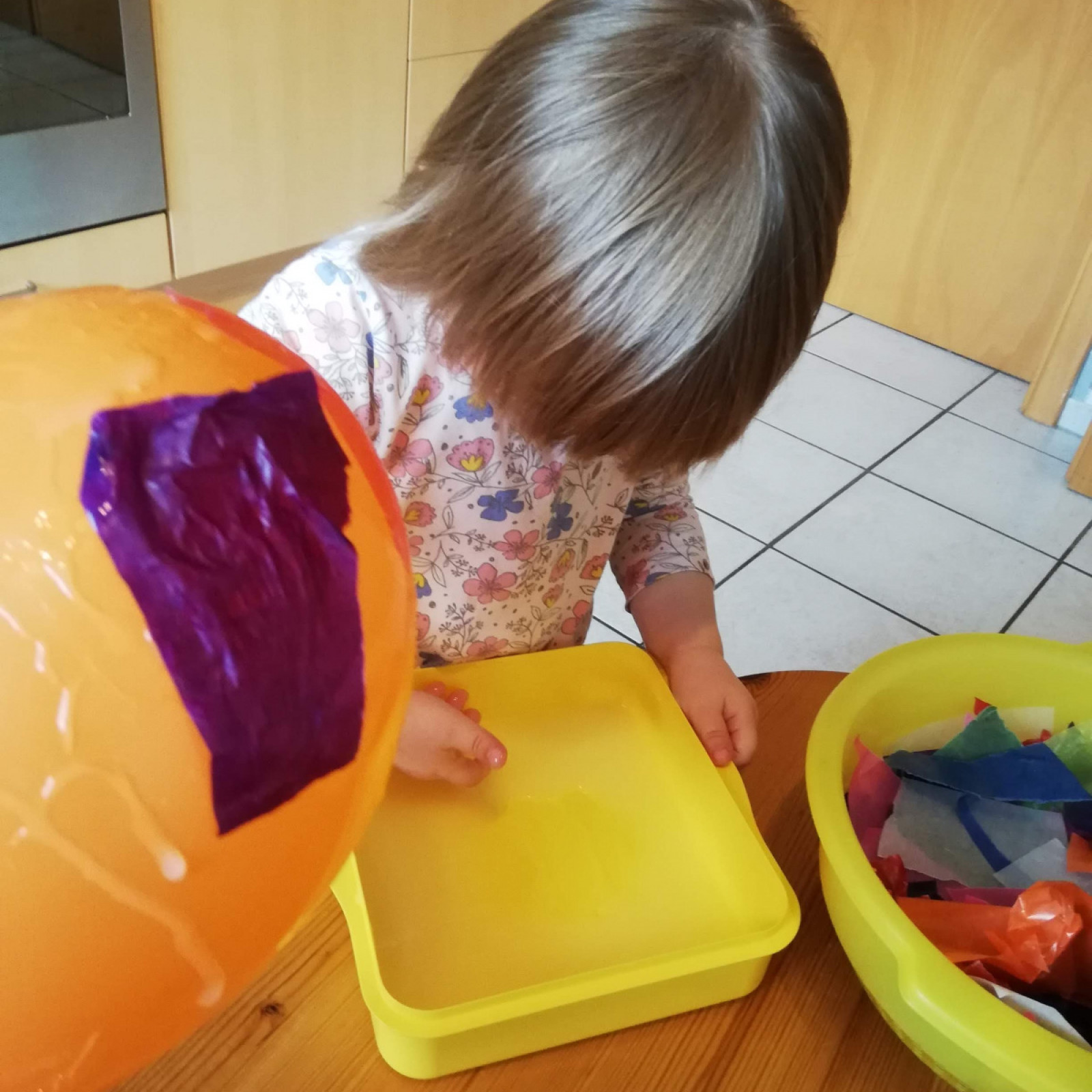 Angebote in Form von Malen mit Farben werden von mir begleitet, doch auch hier lasse ich dem Kind Raum zum Ausprobieren. Es ist damit zu rechnen, dass das Kind die Farbe dann auch einmal auf seine Hose streicht, anstelle auf das Papier. Meine persönlichen Grenzen sind da erreicht, wenn das Kind von dem Malbereich aufsteht und Möbel anmalen möchte beispielsweise.